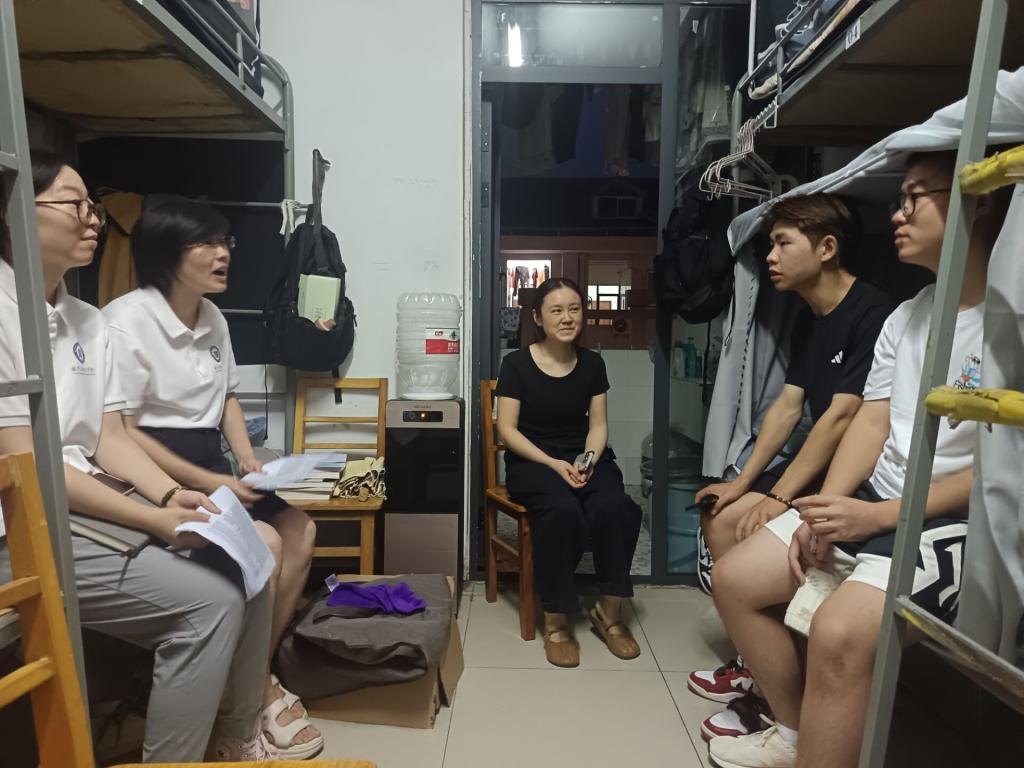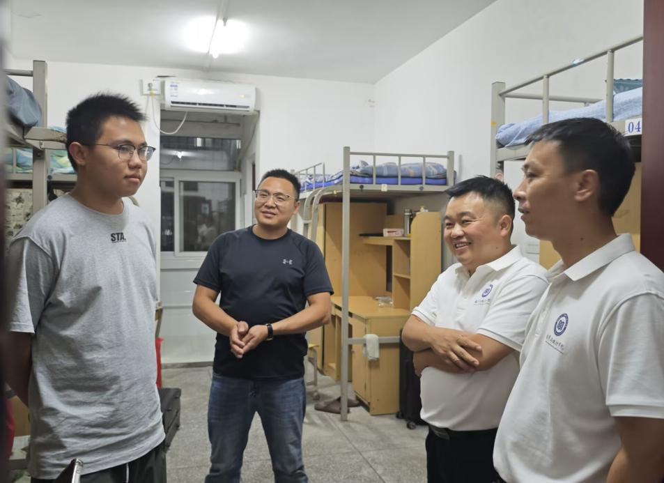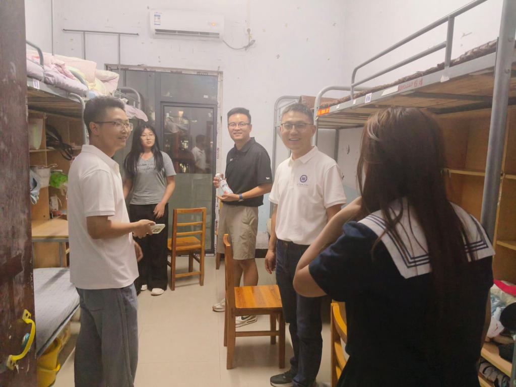 为深入了解新生入学报到及适应情况,传递学校与学院的温暖关怀,增进师生交流。9月4日晚,数学与统计学院开展新生寝室走访活动,学院班子成员,本科生党支部书记、学生科副科长廖祥宇,本科生党支部委员、学生科辅导员、团委书记李子君,2025级新生班主任刘聪、唐昊、汪峰华老师以及公寓管理委员会的学生干部分组走访2025级新生寝室。