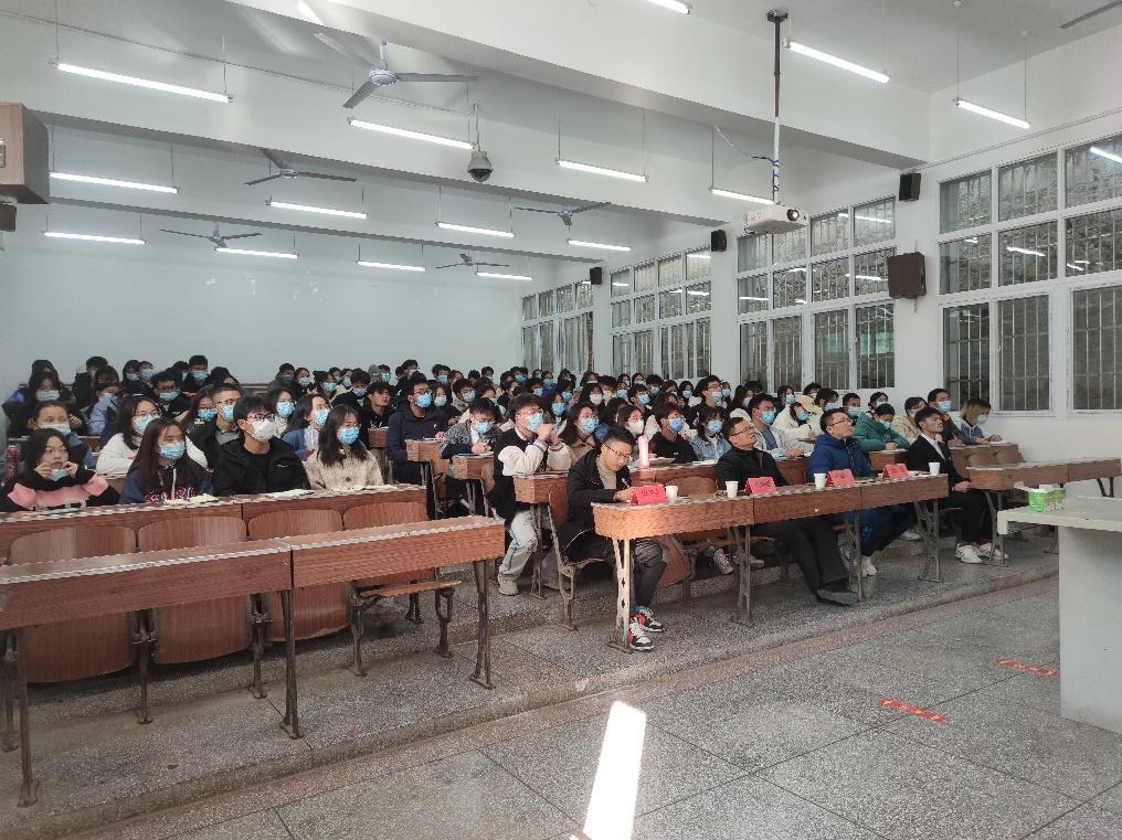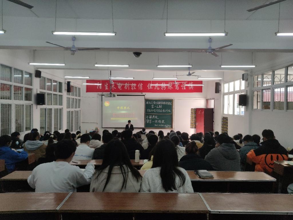 本网讯(见习记者 钱佳凤 常京菲 应欣月/文 程晋/摄)11月27日下午,我院团总支在3307教室成功举行第十五期学生干部综合素质培训班开课典礼暨第一次授课。数学与统计学院党总支委员、书记、副院长赵魁轩同志,数学与统计学院学生党支部书记、学生科副科长黄丽娜同志,数学与统计学院学生党支部委员、团总支书记刘聪同志,数学与统计学院学生党支部委员、学生科辅导员廖祥宇同志出席本次活动。2021级全体学生干部以及团学学生干部到场聆听。