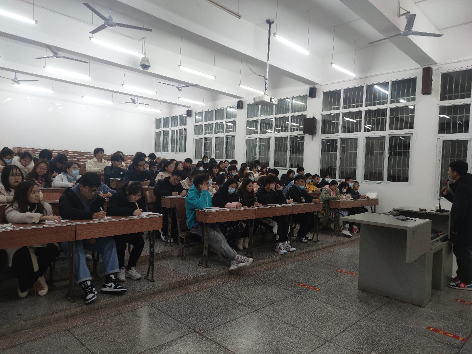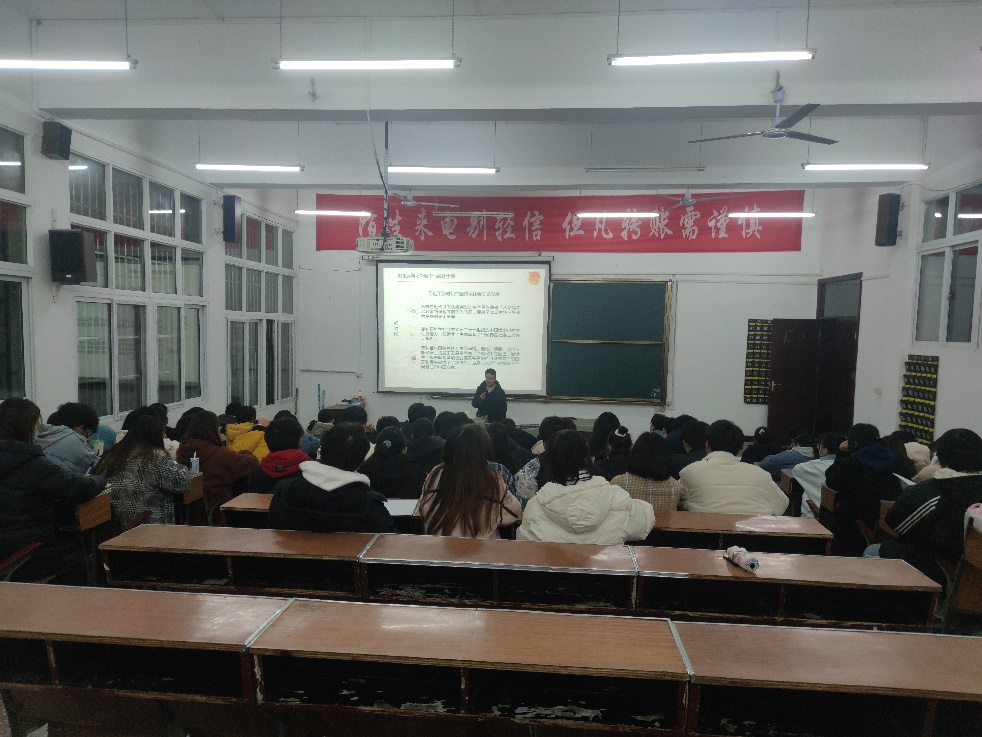 本网讯 (见习记者 应欣月 刘蓟 唐金凤/文 程晋/摄)12月7日晚,我院在3307教室成功开展第十五期学生干部综合素质培训班第四次授课。我院学生党支部委员、学生科辅导员廖祥宇老师进行本次授课,2021级全体学生干部到场聆听。