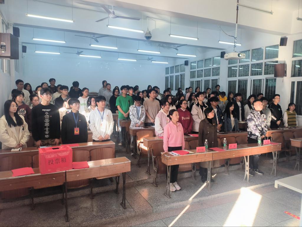 会议伊始,齐唱团歌,并由廖祥宇老师介绍代表学院参加学校团的代表大会的候选人情况。紧接着,黄丽娜老师宣读本次选举的草案。审议通过共青团雷竞技raybet登录入口数学与统计学院团的代表大会草案、总监票人、监票人建议名单。