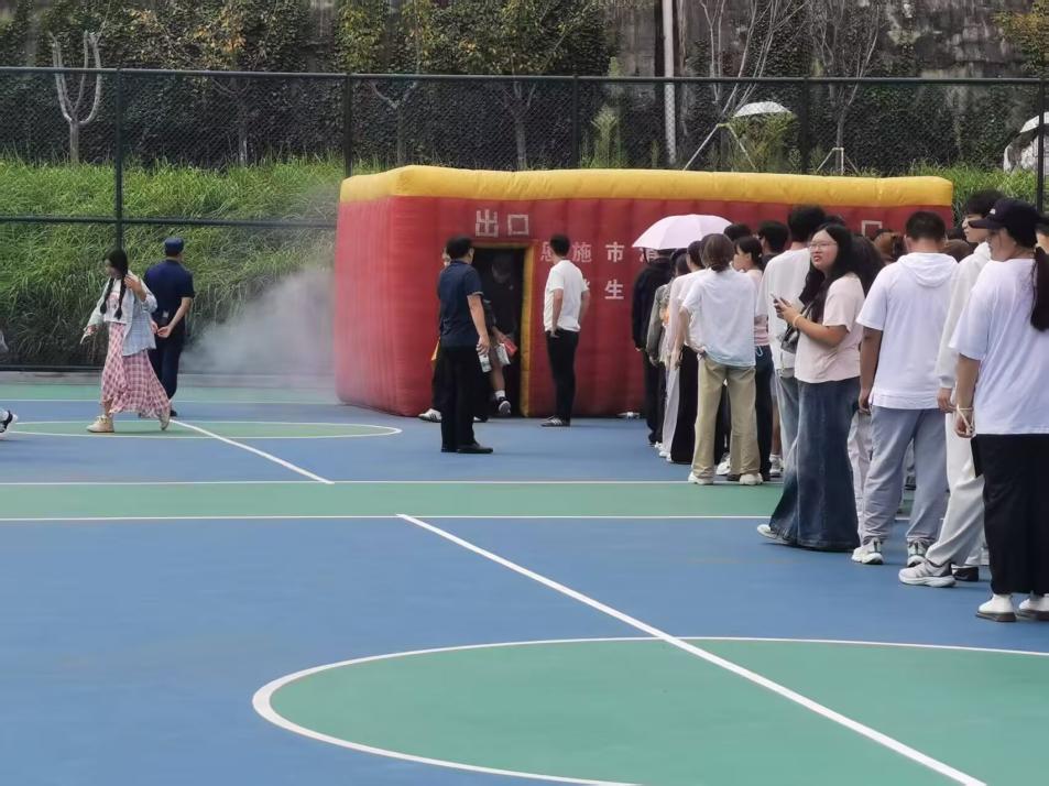 培训中,消防官兵结合案例讲解了灭火器的正确使用方法和适用场景,并进行现场演示。同学们积极参与,分学院依次进行灭火实操,熟练掌握了基本技能。随后,大家走进消防逃生模拟帐篷,沉浸式体验火灾浓烟环境下的逃生过程,学习并掌握“弯腰低姿、捂住口鼻”等正确动作,进一步提升了火灾自救与应对能力。