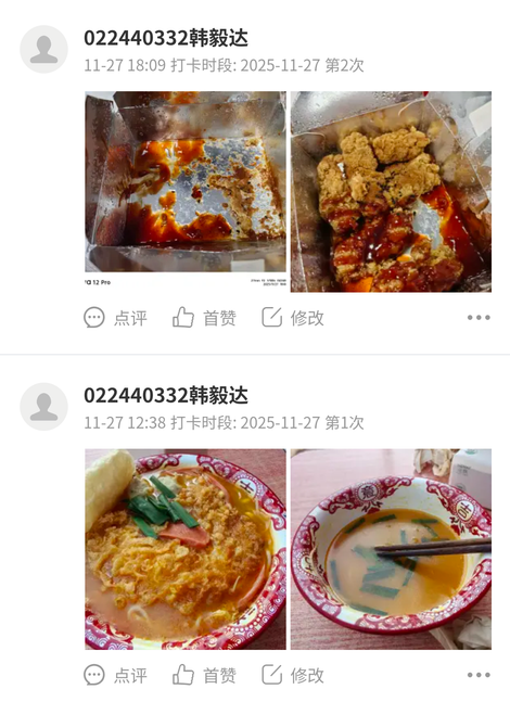 本次活动采用线上打卡方式,参与便捷、覆盖广泛。同学们在每日午、晚餐后,使用水印相机拍摄“光盘”实景照片,并上传至指定平台完成打卡。活动规定,连续完成10次及以上打卡即可获得第二课堂学时认证,有效激发了学生的参与热情。通过真实记录餐盘与持续行为养成,活动引导学生在点滴中树立节约意识、培养节俭习惯。