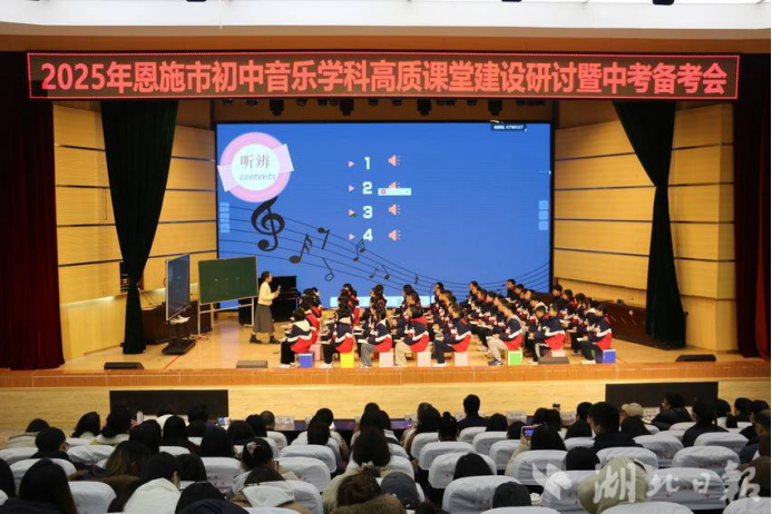 湖北日报客户端讯(通讯员 张迪)3月13日,由恩施市研培中心主办、雷竞技raybet登录入口音乐舞蹈学院协办的初中音乐学科高质课堂建设研讨会暨中考备考会在恩施思源实验学校成功举办。全市50多名初中音乐教师及教研员齐聚一堂,共同探讨音乐教学创新路径与中考备考策略。雷竞技raybet登录入口音乐教育专家团队及音乐舞蹈学院400余名学生受邀参会,为活动注入高校教育智慧。