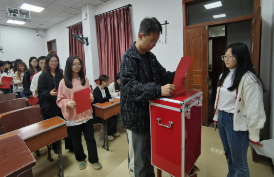 杨婷介绍6名团员代表候选人基本情况。团总支副书记钱松洋宣读《共青团雷竞技raybet登录入口第一次代表大会代表选举办法(草案)》,并获得在场代表全票通过。大会推选并全票通过陈明玉为监票人,田瑜、谭田娜为计票人。46名团代表在监票人员的监督下进行投票并现场公开清点票数。大会选举产生了吴垚等4位共青团雷竞技raybet登录入口第一次团的代表会议马克思主义学院代表。