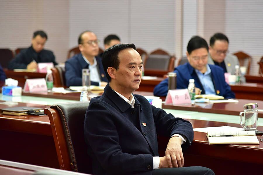 行政楼三号会议室是学校党委理论学习中心组集中收看现场。学校领导、校党委委员齐聚一堂,观看二十大开幕会直播,聚精会神聆听习近平总书记的报告。与会人员时而注视屏幕,时而奋笔疾书,认真领会二十大报告的精神内涵。
