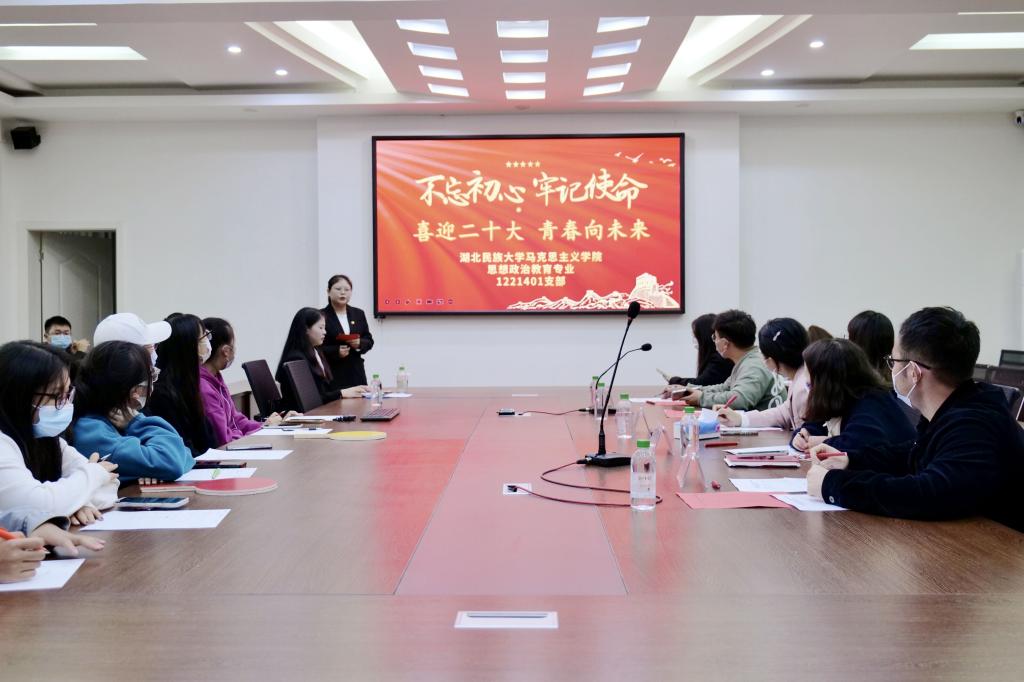 本网讯(记者 张敏/文 通讯员 赵兴玥/文 陈诗琪/图)10月6日下午,我校2022届“百生讲坛”活力团支部暨第三届团支部风采大赛在学工处二楼会议室举行。校团委书记吴珊,研究生学生管理办公室主任陈静,学生思想教育及管理科田甜,校团委社会实践与志愿服务部副主任雷鹏,学生经济资助中心单家迪受邀出席并担任评委。