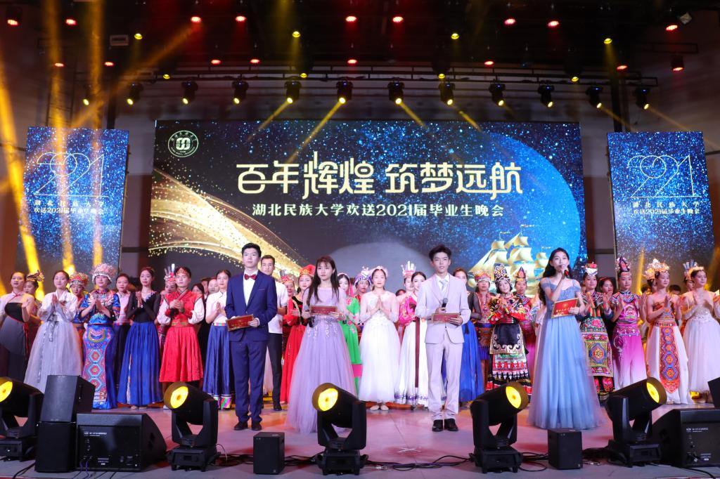 晚会在大合唱《没有共产党就没有新中国》、《不忘初心》中拉开帷幕。毕业生晚会节目形式多样,风格各异,贯穿了情景歌舞、合唱、朗诵等多种类型,激起在场观众一阵阵热烈的掌声。由我校离退休人员工作处带来的舞蹈《映山红》,既回顾党的峥嵘岁月,又展示了我校退休教师的风华。外国语学院与国际教育学院的节目《千年之约》彰显异域风情以及多元文化,将气氛推向高潮。回望青春岁月,展望似水流年,学生工作处的辅导员老师们表演的《奔跑的青春》勾起了大家对青春的无尽回忆。而音诗画节目《一生有你》,溯源建校之年,回顾民大变迁,生动诠释民大人的精神风貌。