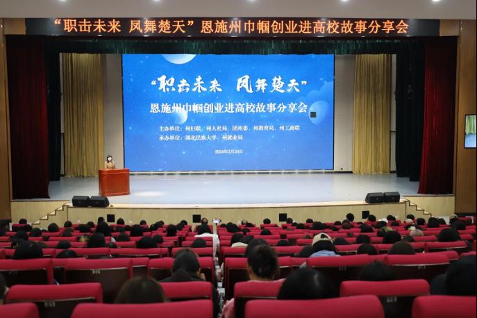 3月24日,由我校和州妇联、团州委、州人社局、州教育局、州工商联等单位联合开展的“职击未来 凤舞楚天”恩施州巾帼创业进高校故事分享会在新区多功能报告厅如期举行。