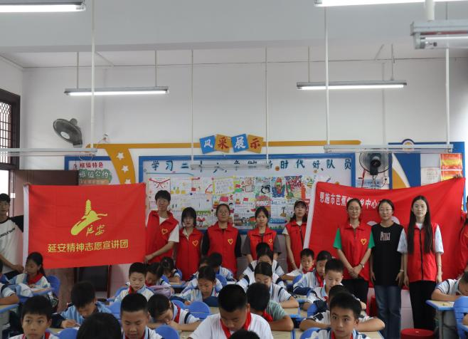 6月18日,我校“红锄头”延安精神志愿宣讲团在芭蕉侗族乡中心小学五年级一班开展了志愿者培训暨“绘色传情,童心颂延安”七彩课堂活动。