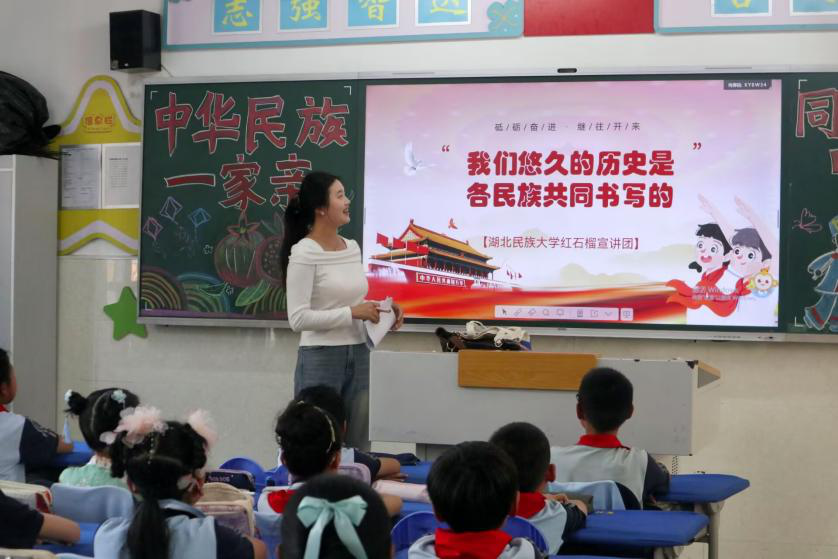 4月18日下午,雷竞技raybet登录入口红石榴宣讲团走进雷竞技raybet登录入口附属小学,开展以“我们悠久的历史是各民族共同书写的”为主题的宣讲活动。雷竞技raybet登录入口红石榴宣讲团10余名成员分组面向雷竞技raybet登录入口附属小学五、六年级学生展开主题宣讲,校团委书记吴珊,校团委办公室主任雷鹏随行指导。