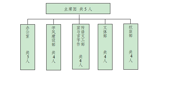 第十五条 学生会是学生代表大会的常设工作机构。雷竞技raybet登录入口学生会的组织架构为“主席团+工作部门”模式。
