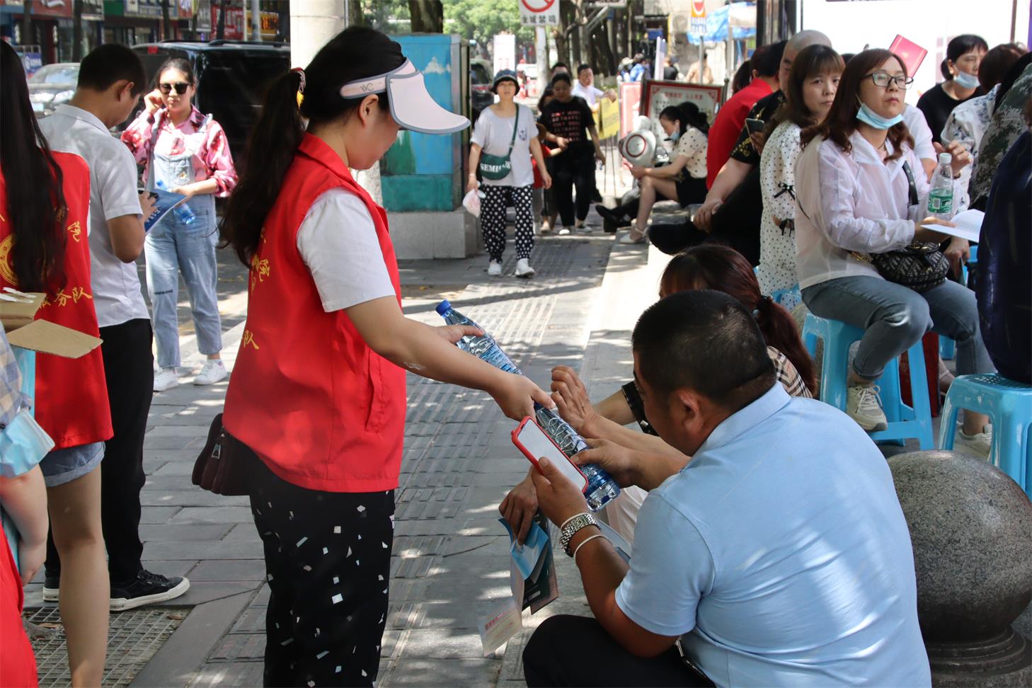 活动伊始,参与活动的志愿者同栖凤社区工作人员在恩施一中前完成汇合。随后,各志愿者们按预先分组与值班表的排班轮流进行巡逻,为考点内的高考考生们营造良好的考试环境。同时他们也时刻关注考点外家长的身体情况,及时提供饮用水及藿香正气水以避免中暑情况的发生,保障家长的身体健康。