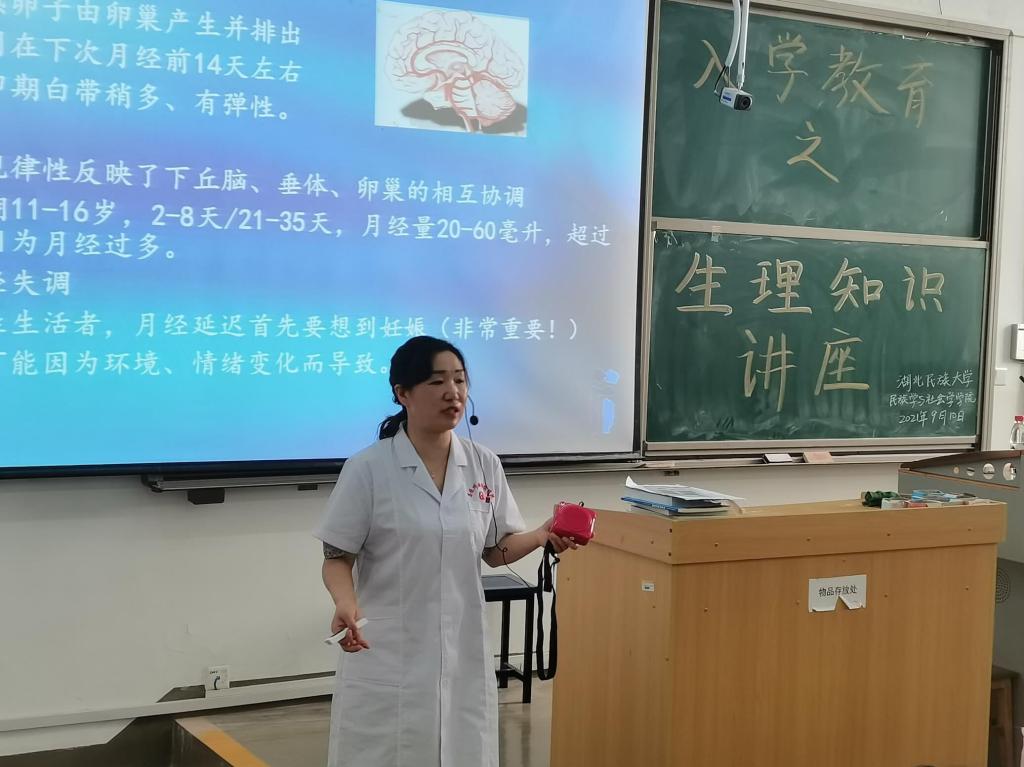 本网讯(记者 张筱玉/文 鲁心雨/图)为增强新生自我防护意识,提高生理健康知识水平,9月10日,我院于修远楼5A506教室开展生理知识讲座。恩施州妇幼保健院妇女保健及妇产科医生谭凤芝担任主讲人,我院全体大一新生参与聆听。