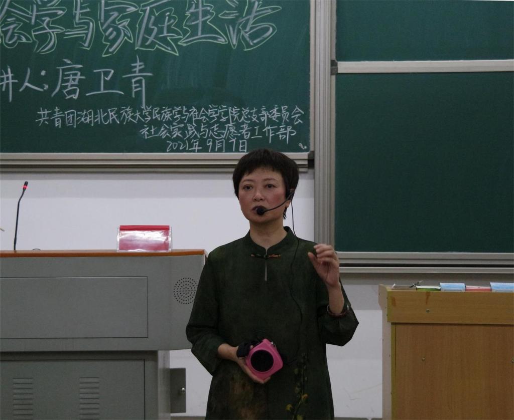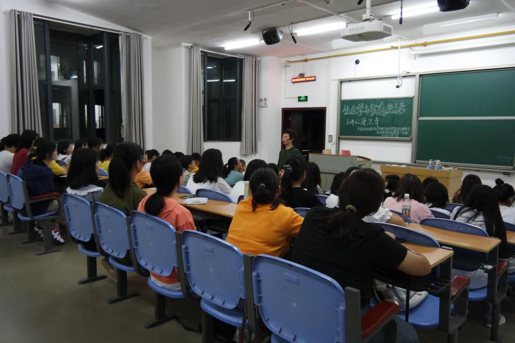 本网讯(记者 欧阳洁/文 刘睿/图)为促使新生了解社会学专业,为未来职业规划打下坚实基础,9月7日,我院团总支社会实践与志愿者工作部在5A505教室成功开展以“社会学与家庭生活”为主题的入学教育。我院副院长唐卫青老师应邀出席并担任主讲人,我院全体大一新生参与聆听。