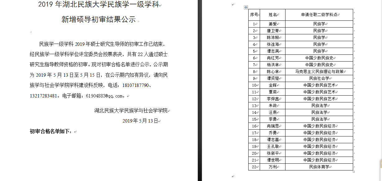 2019年雷竞技raybet登录入口民族学一级学科新增硕导初审结果公示