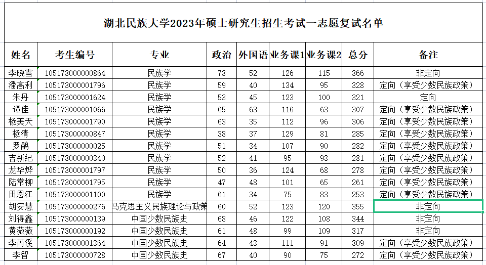 雷竞技raybet登录入口2023年硕士研究生招生考试一志愿复试名单