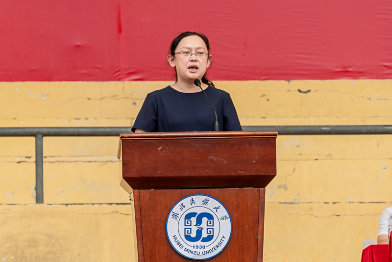 化学与环境工程学院教师翟琨教授代表教师致辞。她回顾自身的学习与教学生涯,建议新同学们在大学阶段拥有健康的体魄、拥有优秀的品格、拥有学习的能力、拥有美好的梦想、拥有拼搏的精神。
