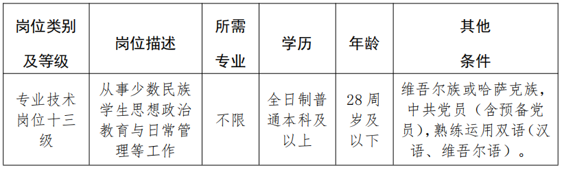 根据雷竞技raybet登录入口工作实际和用人需求,经研究决定,计划面向全社会招聘非编制新疆籍少数民族专职辅导员2人,现将有关事项公告如下: