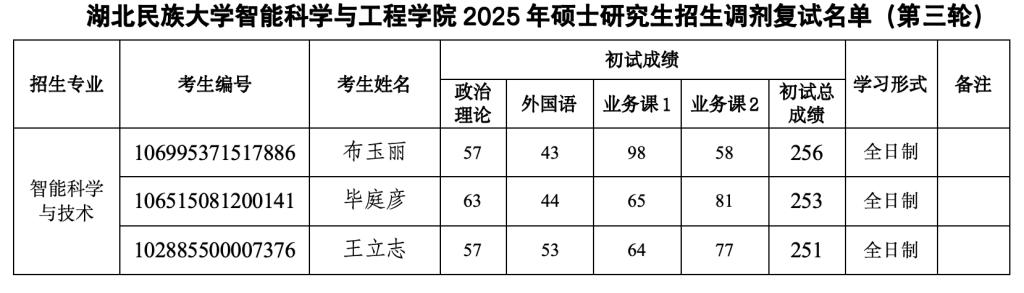 雷竞技raybet登录入口智能科学与工程学院2025年硕士研究生招生调剂复试名单(第三轮)