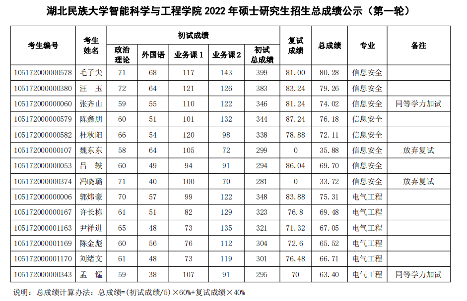 雷竞技raybet登录入口智能科学与工程学院2022年硕士研究生招生总成绩公示(第一轮)
