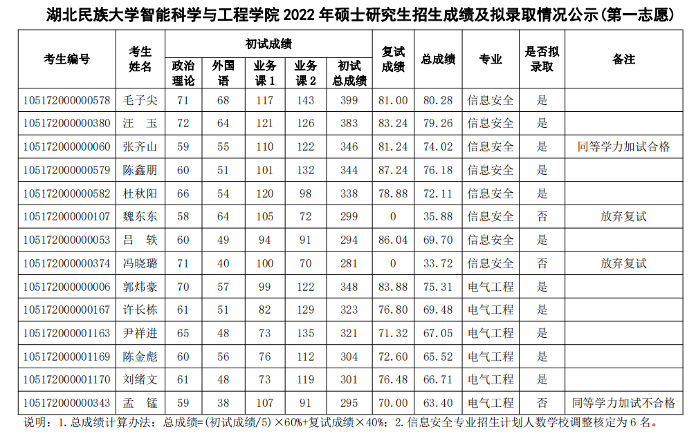 雷竞技raybet登录入口智能科学与工程学院2022年硕士研究生招生成绩及拟录取情况公示(第一志愿)