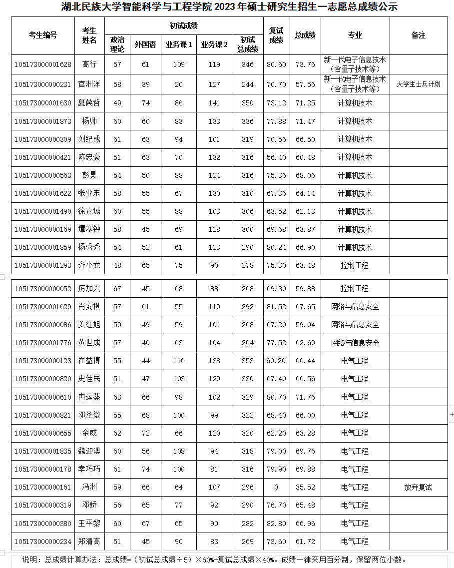 雷竞技raybet登录入口智能科学与工程学院2023年硕士研究生招生一志愿总成绩公示