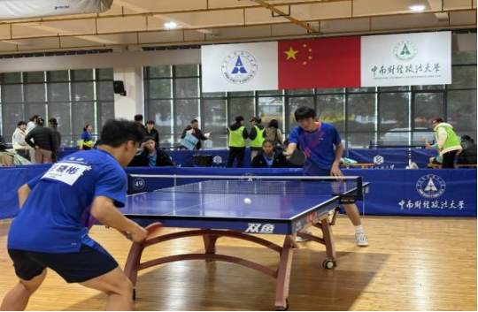 民大代表队选手们在乒乓球赛场上奋力拼搏