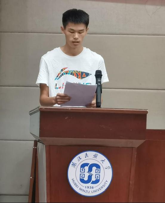 大会第四项,教师代表华中师范大学博士王先茂发言,希望与同学们携手迈步,开启新的篇章,开启人生中新学习,新生活。学会照顾自己和他人,要有真材实学,学真知识,练真本领,衷心祝愿各位同学学有所得,学有所成。