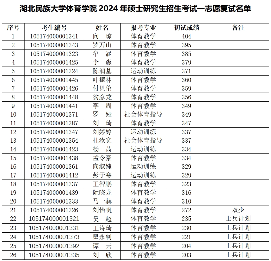 雷竞技raybet登录入口体育学院2024年硕士研究生招生考试一志愿复试名单