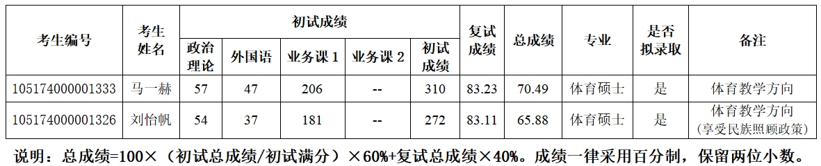 雷竞技raybet登录入口体育学院2024年硕士研究生成绩及拟录取情况公示(递补录取)