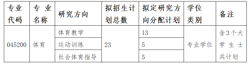体育学院体育硕士专业学位研究生拟招生计划见表1。