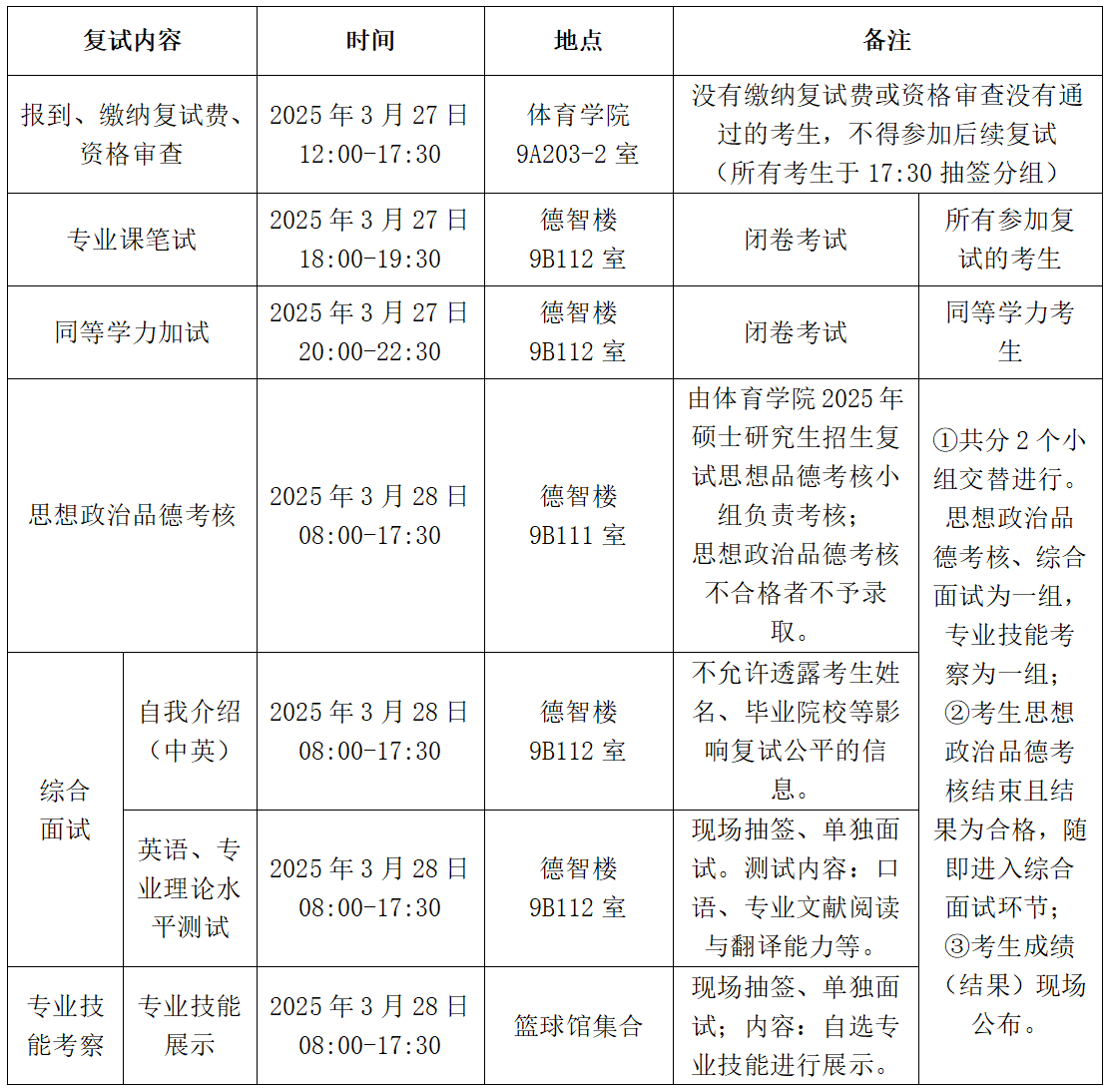 雷竞技raybet登录入口体育学院2025年硕士研究生复试录取工作实施细则
