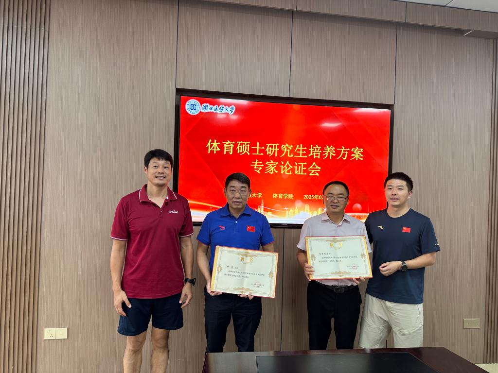 为进一步完善体育专业学位硕士研究生培养方案,7月23日上午,体育学院召开体育专业学位硕士研究生培养方案专家论证会。湖北省教育科学研究院正高级教师甘琼、恩施州教育科学研究院教研员谌鹏、恩施市教学研究和教师培训中心教研员向珉、恩施思源实验学校校长向万钧,以及来自恩施州不同学校7名骨干教师共同为方案“把脉”。体育学院院长何斌、副书记万利、副院长张辉、学科建设科科长王先茂及部分研究生导师代表出席论证会。会议由体育学院副院长张辉主持,会议伊始,体育学院院长何斌、副书记万利、副院长张辉向校外行业导师代表湖北省教育科学研究院正高级教师甘琼和恩施思源实验学校校长向万钧颁发导师证书。