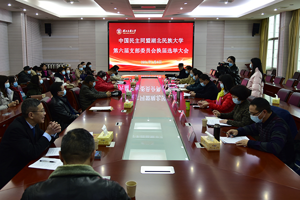 1月8日上午,中国民主同盟雷竞技raybet登录入口支部委员会换届大会在行政楼三楼会议室举行。我校党委副书记、副校长汪兴平,恩施州政协副主席、民盟恩施州委主委何义发,民盟恩施州委副主委司马俊莲、王平、刘春荣,我校党委统战部常务副部长丁莉出席会议。