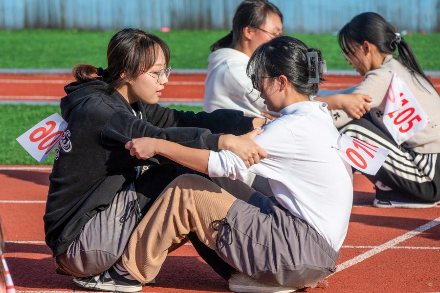 当天下午,民族趣味运动会在五环体育场、德智楼陀螺训练场、毽球场三个场地同时进行,共包括跷旱船、毽球两项集体项目,蹴球、押加两项个人项目。跷旱船是土家族传统体育项目,两人一组互相抓住对方小臂,坐在对方脚背上形成“船体”,两人手脚并用、屈伸腰背,使“船体”不断起伏前进,犹如水中摇船。押加是藏族人民喜爱的民族传统体育项目,两名参赛选手为一组,将一条长绸带两端系成圆环套在脖子上,选手向两端奋力拉,先触碰目标物品者获胜。参赛选手在观赛学生激烈加油声中咬紧牙关、奋力向前,充分展示学生积极向上的精神风貌,调动其体育热情,同时,在运动中收获知识与情谊。化学与环境工程学院龚春莲同学在参加了趣味活动后表示,“民族文化节为我们提供了一个认识和了解不同民族文化的机会,能够加深各民族学生间的联系,既促进了民族团结和社会稳定,也增强了大家的民族团结意识。”