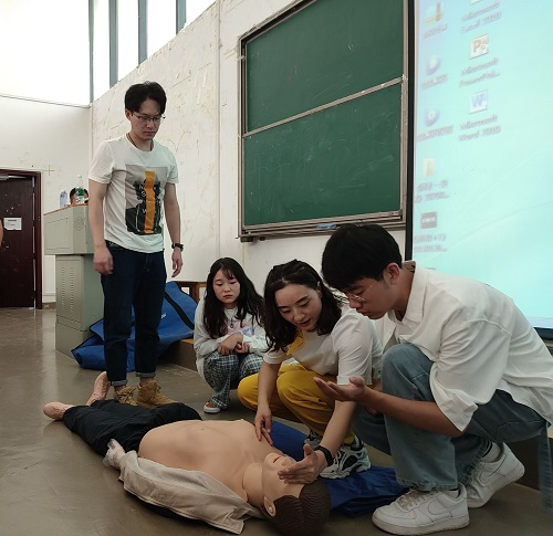 本次培训围绕发生紧急情况时如何互救展开。通过PPT讲解、观看视频、现场模拟等方式,使学生对心肺复苏等方面的基本急救知识得到进一步了解。