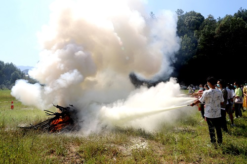 消防知识演习现场,校保卫处和州消防救援支队着重讲解了消防水带的连接、灭火器的使用方法,用高压水枪进行灭火演示,讲解和演示相结合,演绎生动,学生聚精会神,积极参加消防演习。