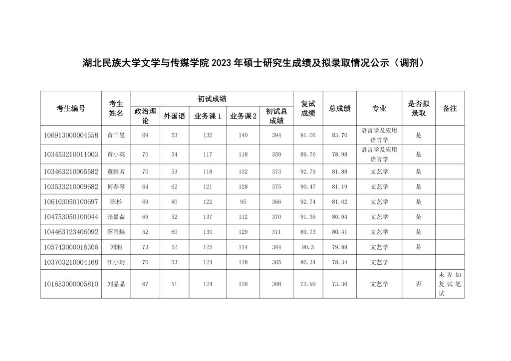 雷竞技raybet登录入口文学与传媒学院 2023 年硕士研究生成绩及拟录取情况公示(调剂)