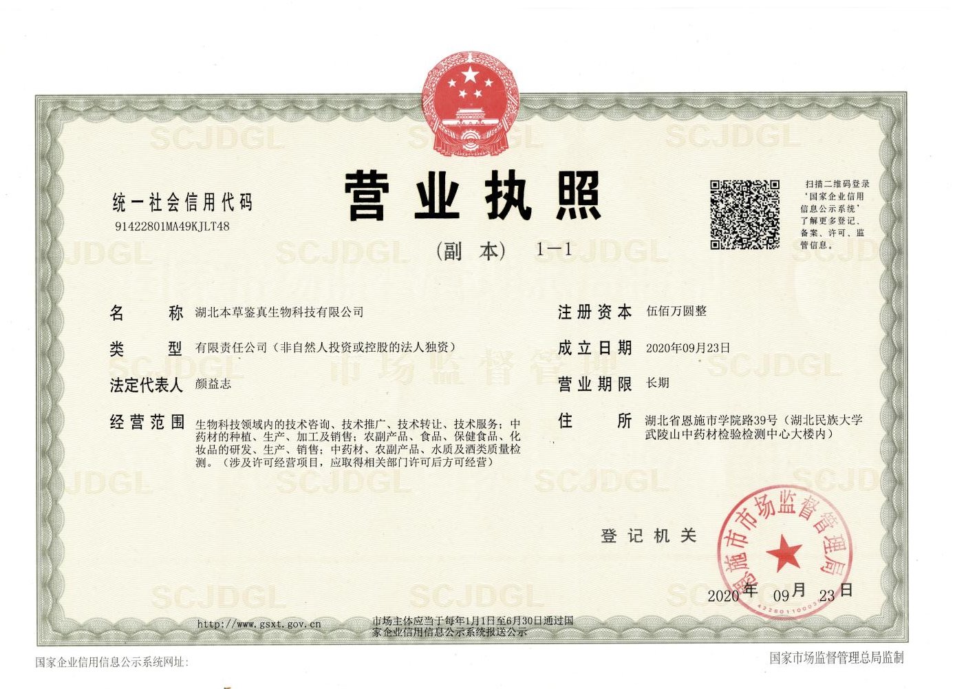 湖北本草鉴真生物科技有限公司在雷竞技raybet登录入口成立