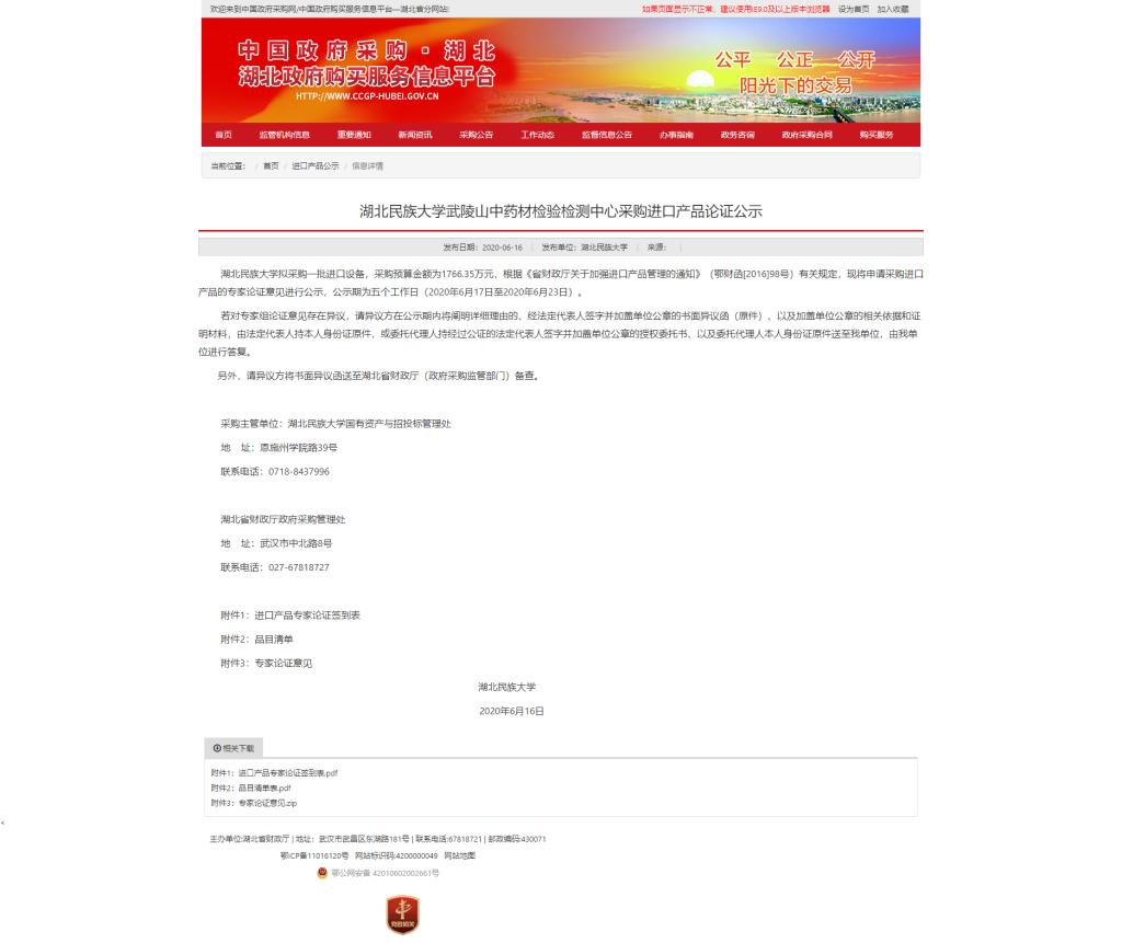 雷竞技raybet登录入口武陵山中药材检验检测中心采购进口产品论证公示