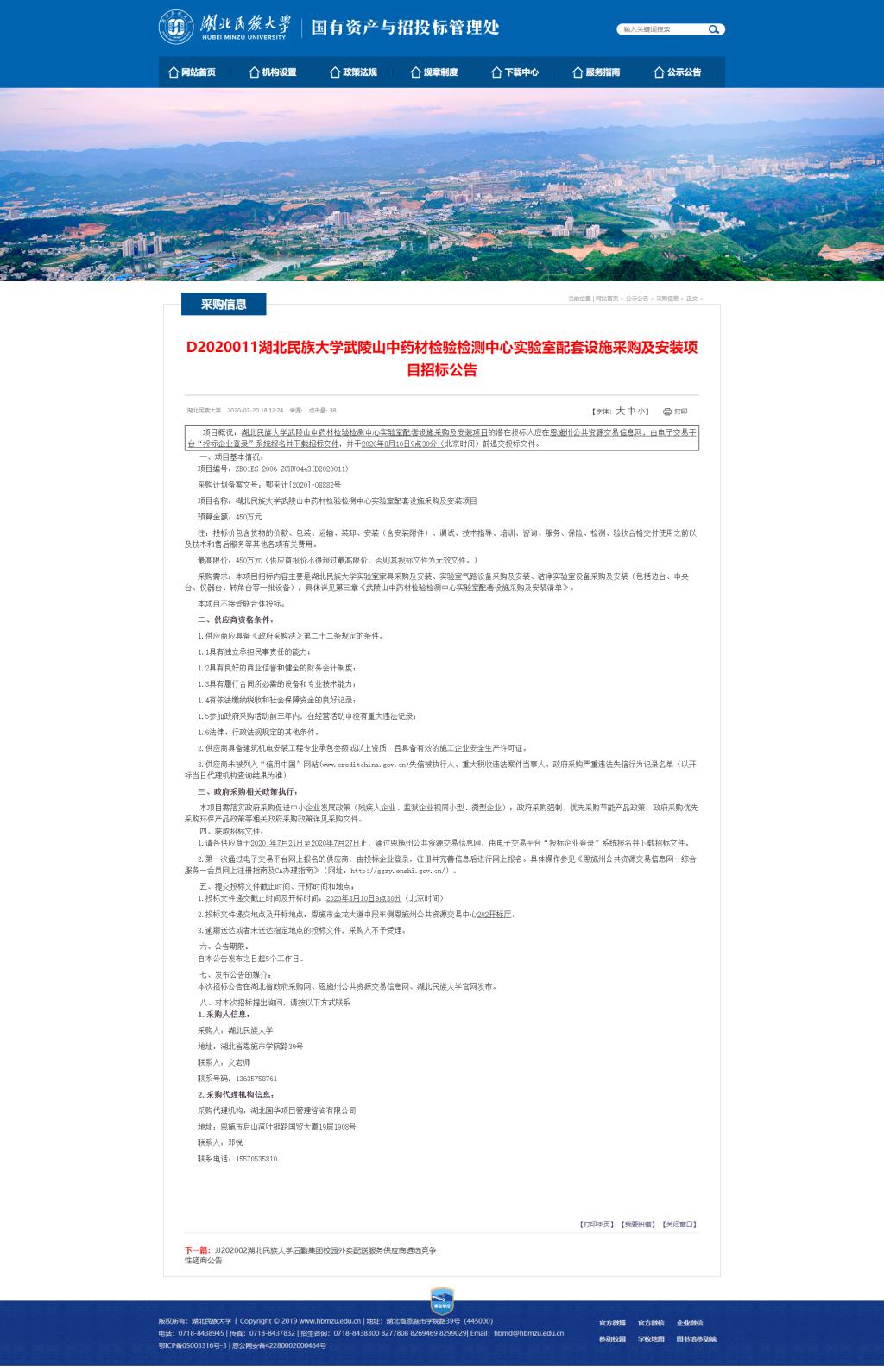 项目概况:雷竞技raybet登录入口武陵山中药材检验检测中心实验室配套设施采购及安装项目的潜在投标人应在恩施州公共资源交易信息网,由电子交易平台“投标企业登录”系统报名并下载招标文件,并于2020年8月10日9点30分(北京时间)前递交投标文件。