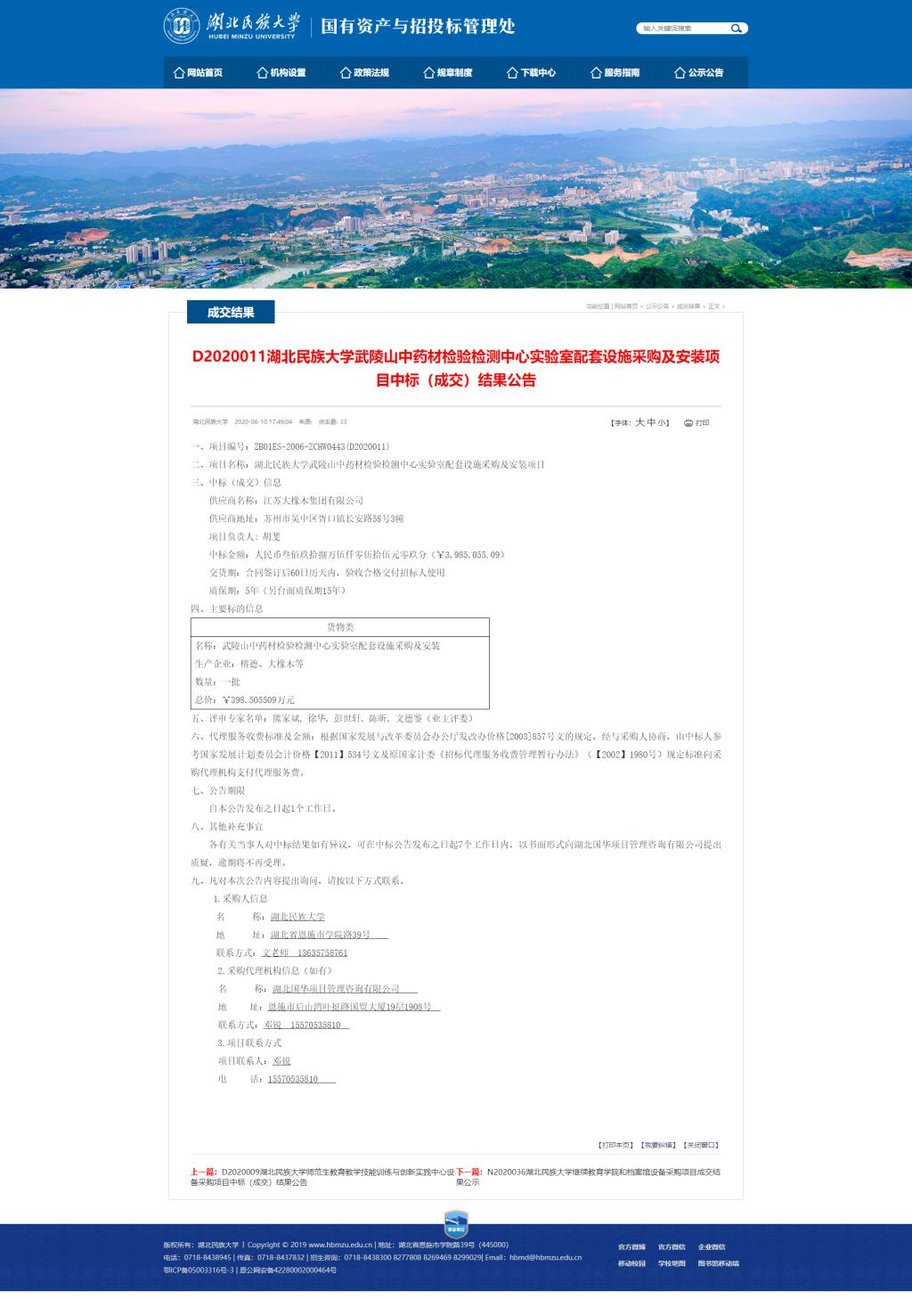 雷竞技raybet登录入口武陵山中药材检验检测中心实验室配套设施采购及安装项目中标(成交)结果公告
