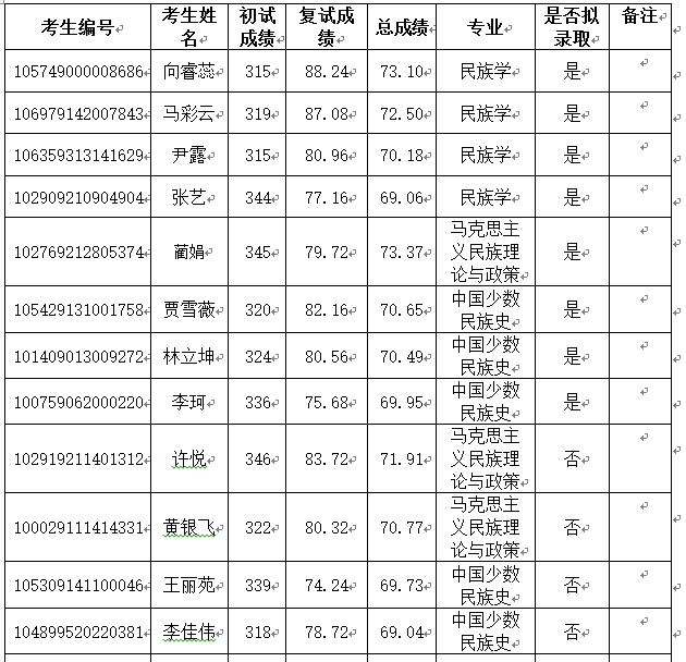 雷竞技raybet登录入口民族学与社会学学院2019年研究生成绩及拟录取情况公示(调剂生)