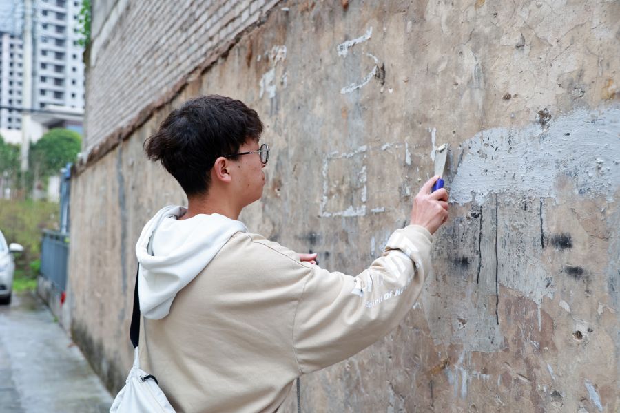志愿者在铲除“小广告”