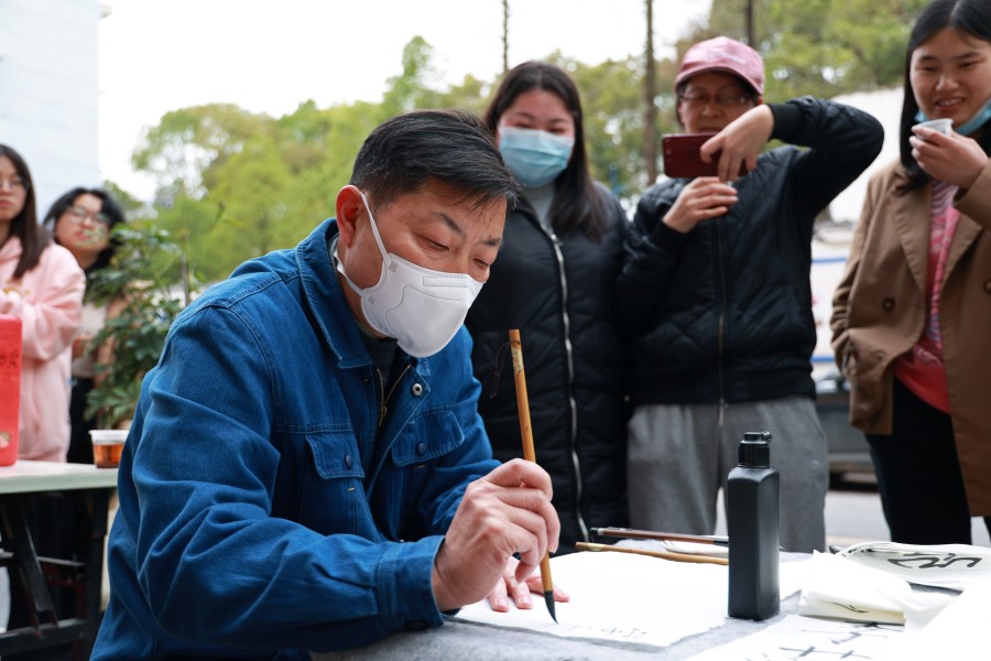 书画展览活动中,社区居民和学生进行现场创作。