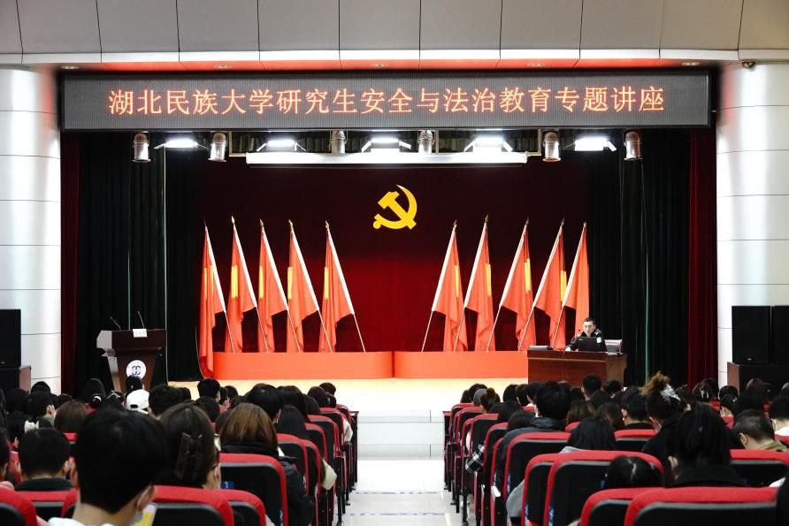 3月16日下午,研究生处联合保卫处在行政楼一号会议室举办雷竞技raybet登录入口研究生安全与法治教育专题讲座。讲座分两个阶段进行,第一阶段保卫处舒吉高科长通报我校校园安全情况,第二阶段恩施市公安局土桥派出所王烁警官开展校园安全与法治教育讲座。专题讲座吸引了300多名研究生参加,参加学生覆盖全校所有研究生培养单位。