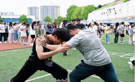 59日,我校以“中华民族一家亲游园会”活动为契机,围绕“多彩民族,筑梦中华”主题教育扎实开展系列活动民族文化节以游园会的形式举行,研究生部负责侗族展区,开展了斗鸡扳手腕、跳房子等民族特色活动,让参与的师生感受到了独特的侗族魅力