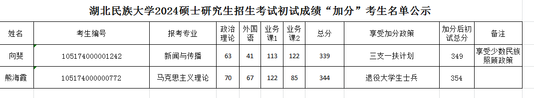 雷竞技raybet登录入口2024硕士研究生招生考试初试成绩“加分”考生名单公示