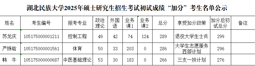 雷竞技raybet登录入口2025硕士研究生招生考试初试成绩“加分”考生名单公示