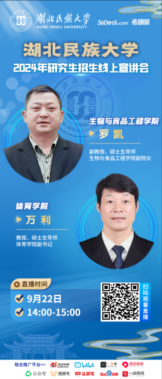 雷竞技raybet登录入口生物与食品工程学院罗凯和体育学院万利两位老师莅临直播间,为广大考生解读研招政策、专业详情。欢迎广大考生及家长扫描下方海报二维码观看!
